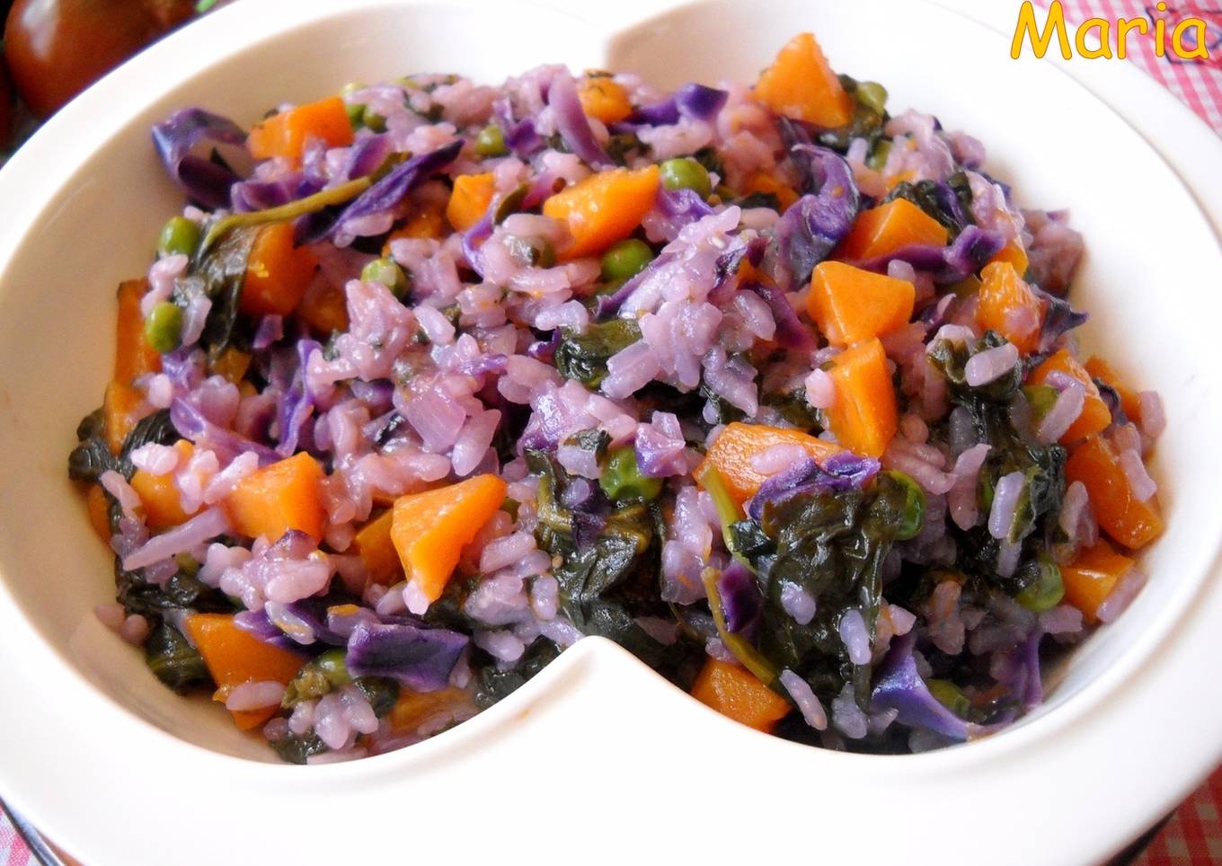 Un risotto apetitoso , colorido y saludable.