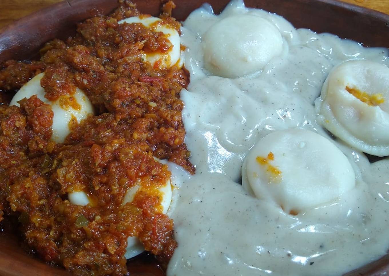 - Emplatar con 6 sorrentinos y a hacia un lado la salsa de ajo, cebolla, morrón verde y tomate y hacia la otra mitad la salsa blanca.