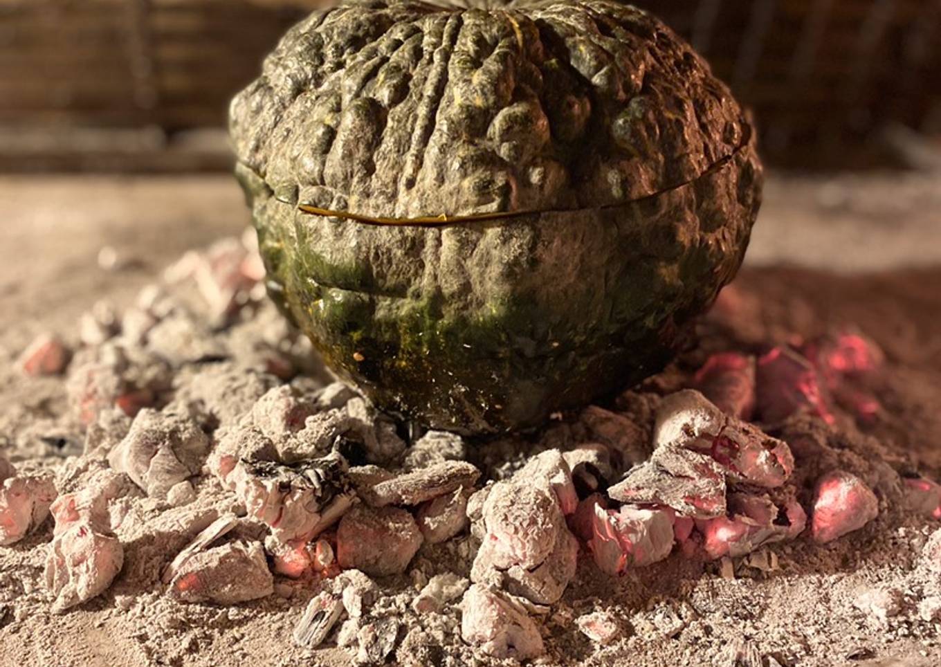 - Verter la mezcla en la calabaza, arriba de la misma las papas y luego cubrir con el queso. Tapar y colocarla rodeada de brasas, sin que ellas toque la calabaza. Dejar entre 50 y 70 minutos, hasta que se derrita el queso y la calabaza quede blanda por dentro.