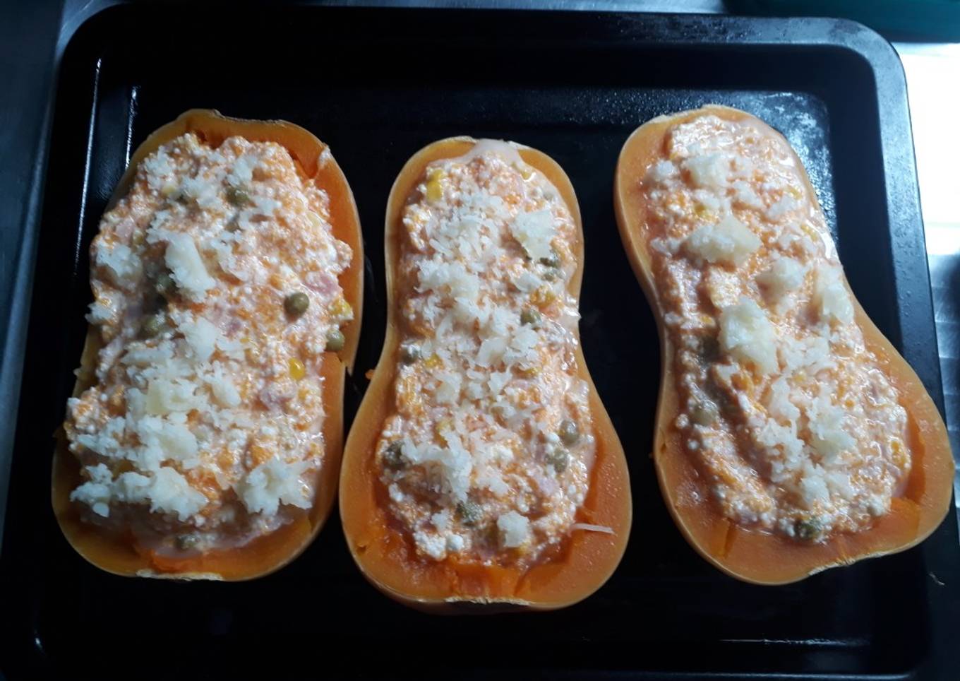 - Coser las calabazas una vez que estén hacerle un hueco y utilizar el puré en el relleno. Para el relleno, a la ricotta incorporar la calabaza, el choclo y el jamón picado a esto añadir las dos claras de huevo y una vez que se una la mezcla rellenar las calabazas agregar el queso arriba y llevarlas a horno medio hasta tanto el queso quedé derretido y listo a disfrutar!!!