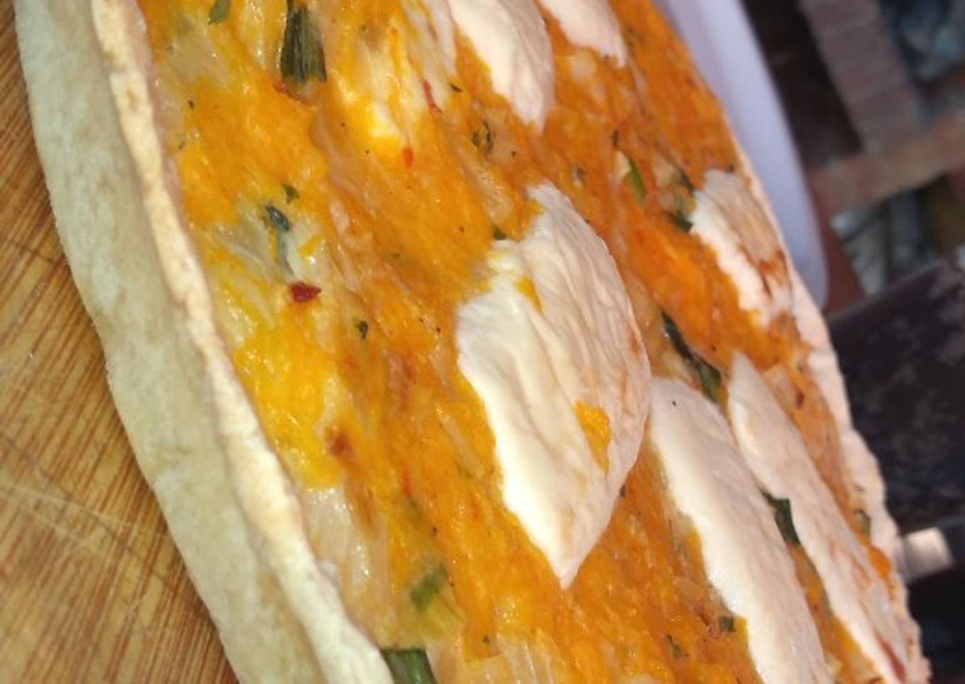- Sobre la tapa de la tarta poner pan rallado disperso para que absorba el agua que larga la calabaza, luego agregamos la mezcla y al horno por 25 min, luego le agregamos queso cremoso por arriba y lo volvemos a mandar al horno hasta que el queso este derretido y listo!