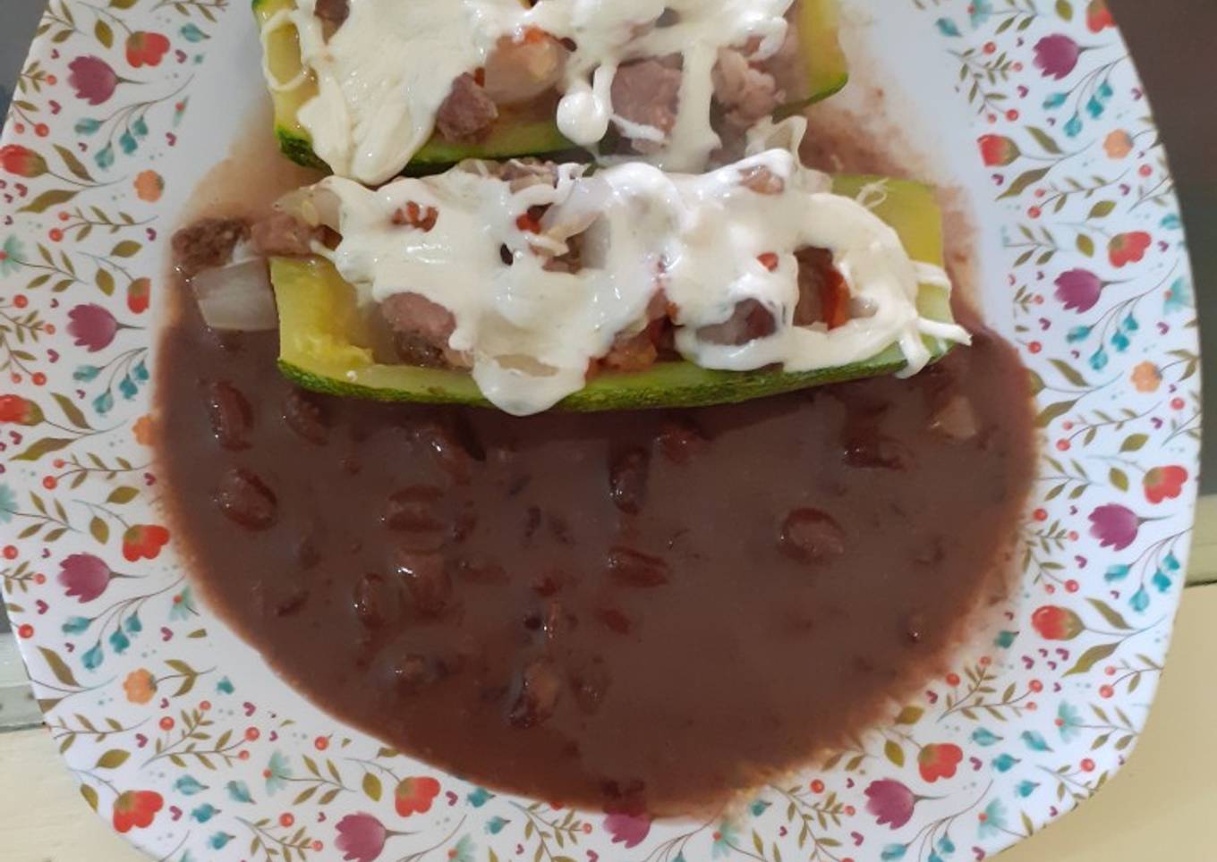 - Ya que el guiso esté hecho aproximadamente 15 minutos.. Rellenamos las calabacitas y ponemos queso encima.. las ponemos un minuto en el microondas y listo.. yo acompañe con frijoles