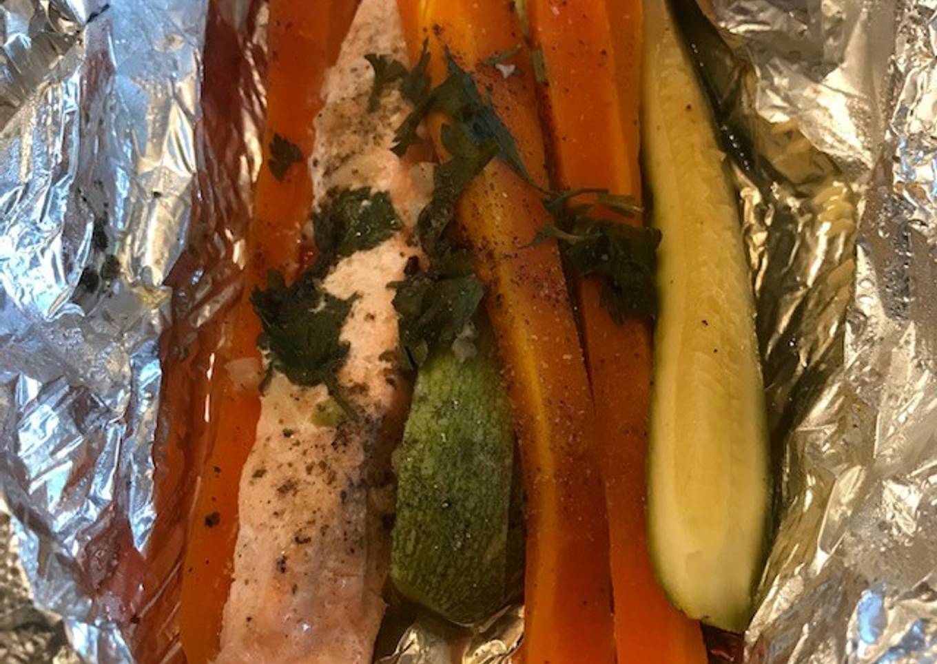 Salmón al vapor con verduras